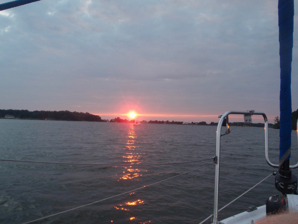 After dinner, we were treated to a lovely sunset as we played cards and dominoes on the foredeck.