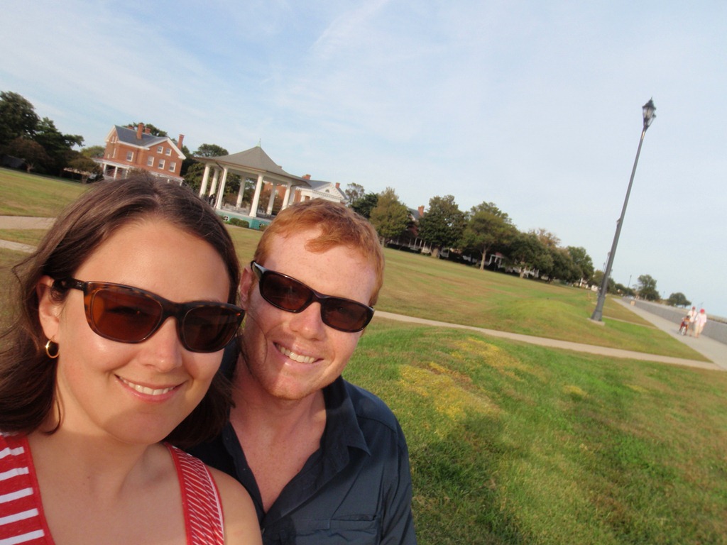 By 1630 we anchored by  Old Point Comfort and the tunnel bridge just north of Norfolk.  After using a sunshower for the first time (super cool) we were refreshed and ready to go ashore.  We got our dinghy inflated and motored over to the Old Point Comfort fort on an evening stroll. History fact: the longest US fort in continuous use, where Jefferson Davis was imprisoned and where freed slaves came to enlist.