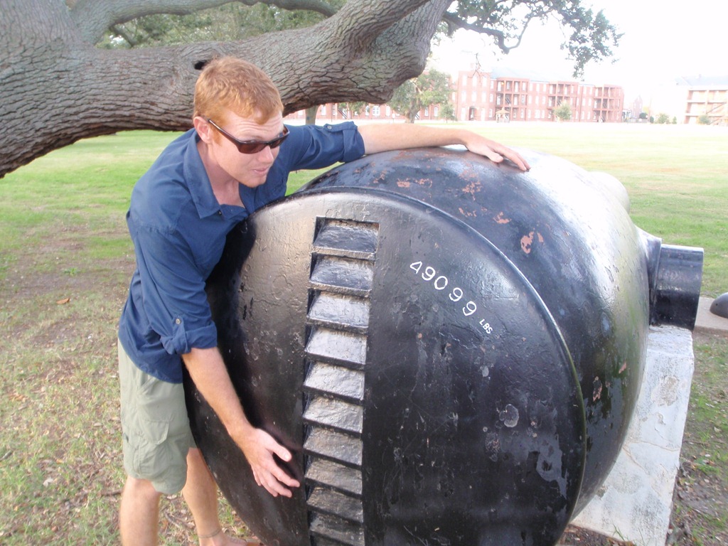 After walking a loop around the side of and through the fort, we returned to our dinghy.  Next to us was a sport fishing boat waiting at the ramp for his trailer.  The guy wanted to give us some of his left over calamari bait, but we don’t plan on fishing until NC.  He said we could just eat it, yet, still we declined.