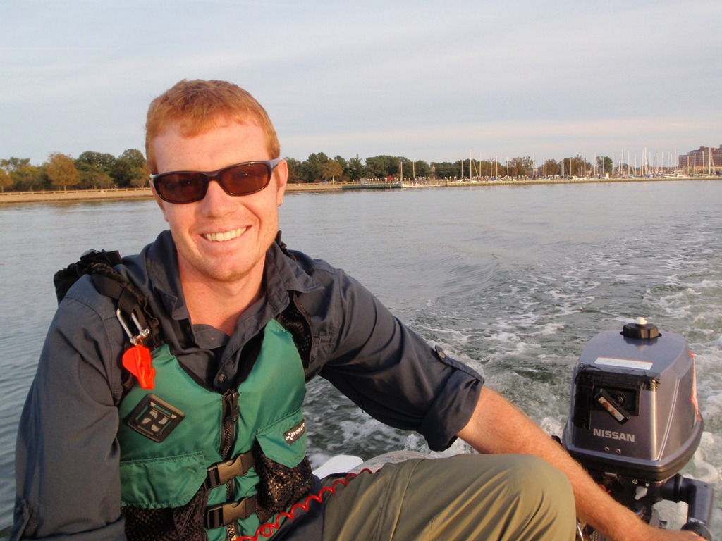 As a beautiful sunset began to appear, Grant motored us back to the boat. (Old Comfort Marina in the background).