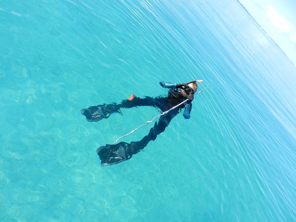 He speared a lion fish, which is an invasive species. They have no known predators and touching their beautiful spines can kill you. It is good to kill them instead! Grant said it was pretty slow in the water.