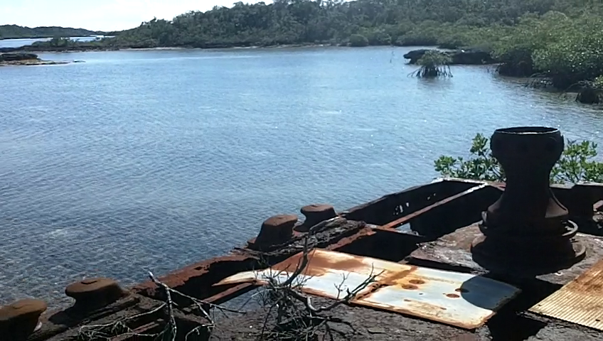 A nearby shallow area protected by islands made for a great dinghy adventure. There were a lot of young sea turtles zooming around in the shallow water, but only one fish was hooked and lost. The remnants of some sort of building, seen on the way over, turned out to be some sort of factory barge. Inside of the rust pile were two monstrous engines, 12 feet tall and 17 feet long each.