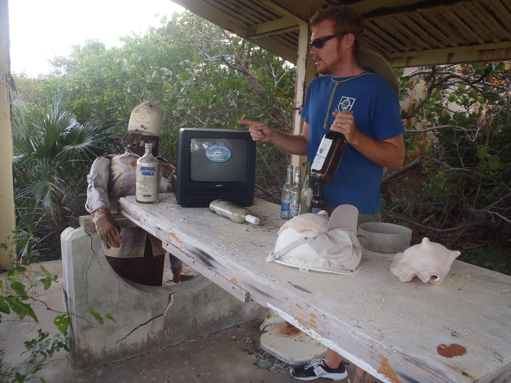 We hiked westward on Pipe Cay to an abandoned DECCA station noted on the chart.  It has a huge cement pier with bollards, a cement boat ramp, a large cistern and several buildings.  It had been abandoned for at least 20 years based on the graffiti.