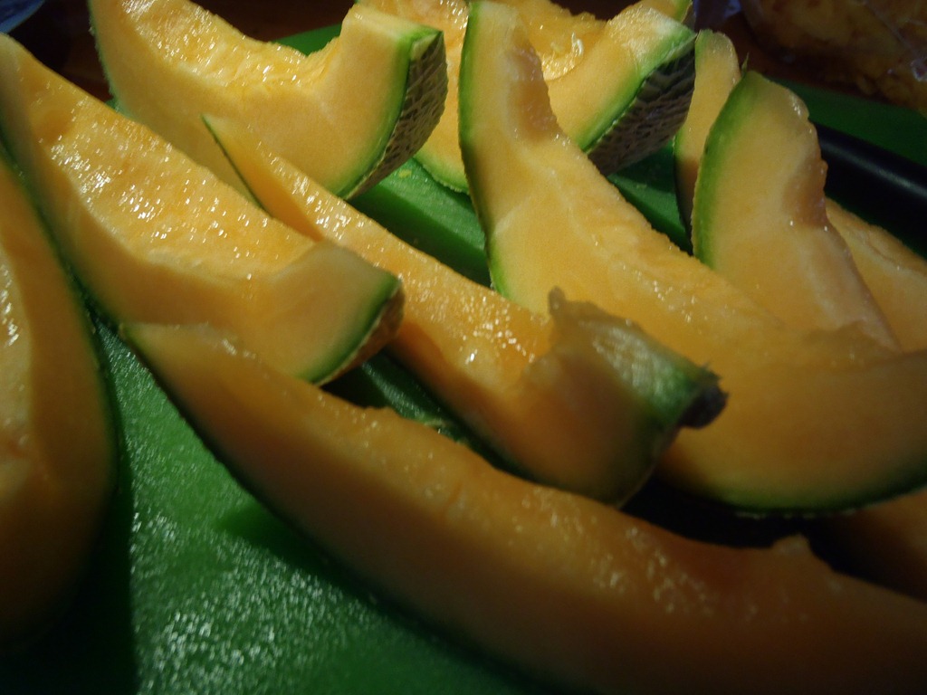 And to finish the meal we added fresh cantaloupe slices, still chilled from the store! Fresh produce is still a luxury.
