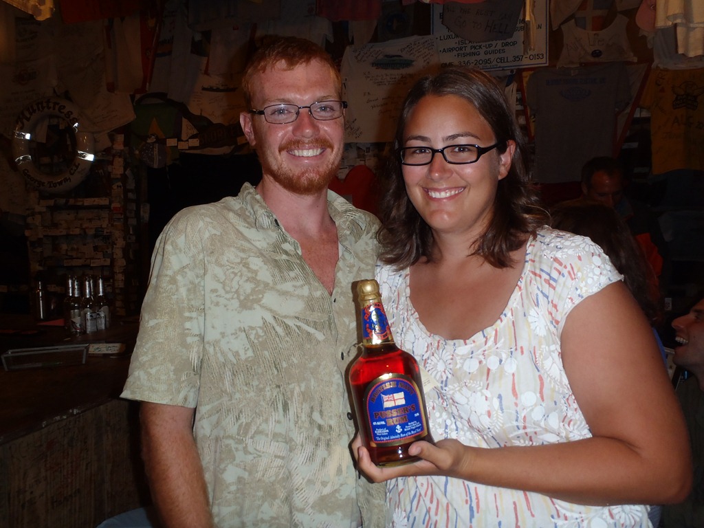 Sunday night was Oscars night—our chance to reconnect with American celebrity culture. Another cruising boat put on a voting contest at Chat and Chill, the bar on Volleyball Beach. Amelia spent hours researching websites and blogs to create her “winning list” because with all the business of cruising we haven’t seen or heard of most of these movies. She entered her picks into the contest’s computer (all very sophisticated) and won the grand prize, a bottle of Pusser’s Rum, by a landslide. Amelia would like to thank the NYT and Washington Post websites for their advice.