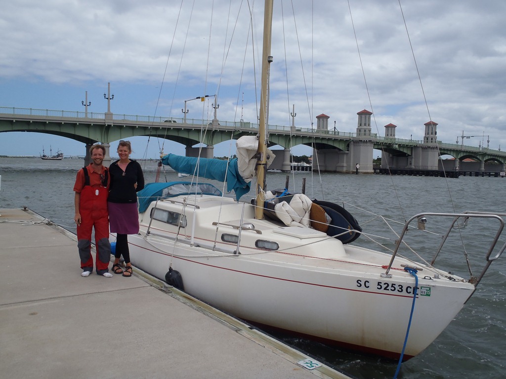 Just this Friday we had a delicious dinner in St. Augustine with Carlos and Steph who love sailing and had found our blog. The next day we took them out on Velocir for a morning sail. They have a Flying Scot and are interested in cruising one day. It was so amazing to talk with them about cruising—there is so much to talk about! They said they felt like they already knew us from our videos, but that we were much taller in person!!