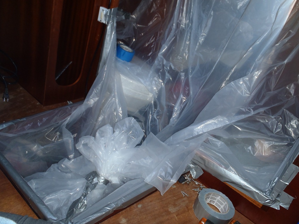 The duct taped plastic shield worked great! It didn’t stick to the varnished wood or leave any residue.
